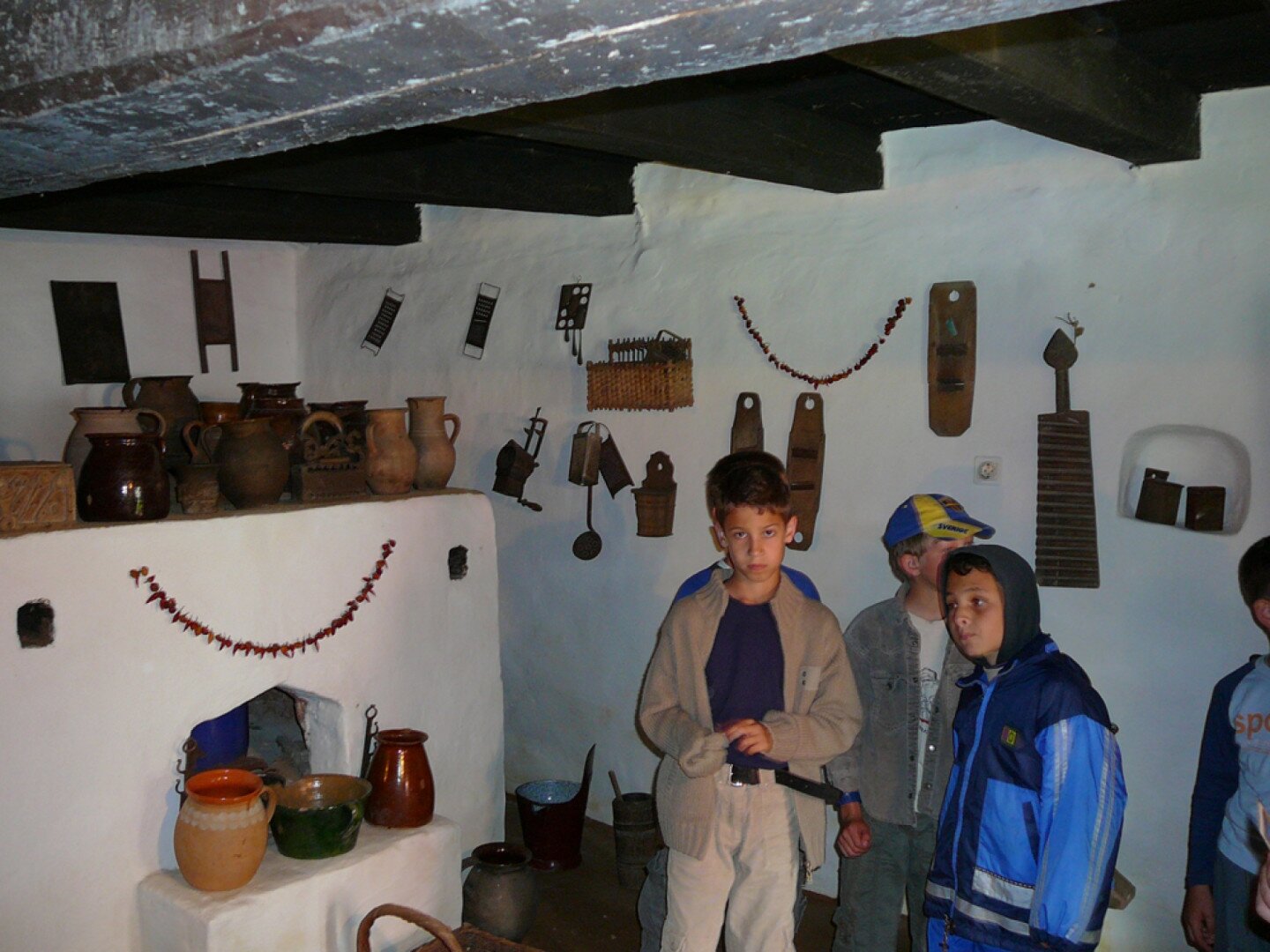 Ausstellung über das Leben der Bewohner des Feuchtgebiets, Räucherkammer mit Holzofen