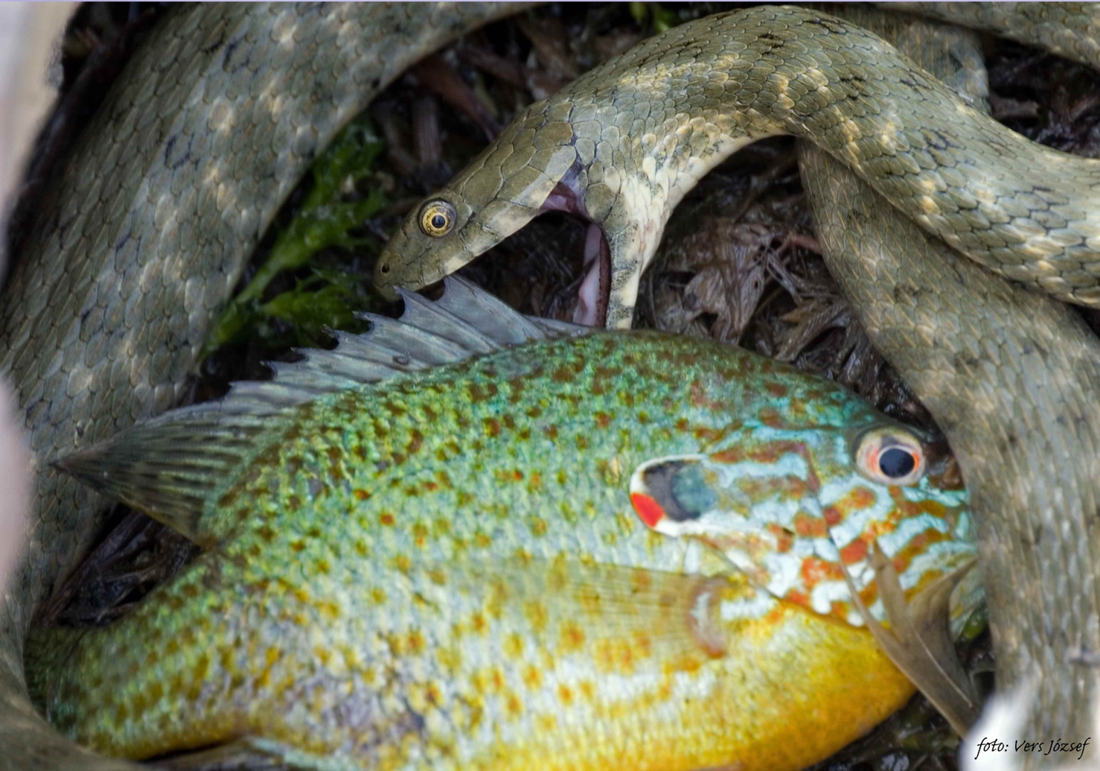 A vizekhez ragaszkodó faj, főként nagyobb tavaink parti zónájában gyakori. Elsősorban kistestű halakkal táplálkozik. Élőhelye, valamint a testét tarkító pepitamintázat teszi felismerhetővé, habár vannak egyszínű példányai is. A nőstények nagyobbak és vaskosabbak a hímeknél. Tojásaikat késő tavasszal, vagy nyár elején rakják nád- vagy rőzsekupacokba, üregekbe. Állományainak egyik veszélyeztető tényezője, ha telelőhelye távol esik a nyári tartózkodási helyétől: vonulása során