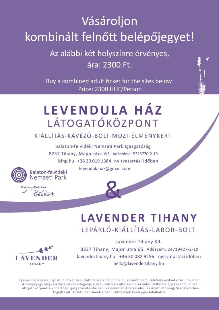 Combined ticket (Lavender House Visitor Centre and Lavender Tihany) | 2 300 Ft |