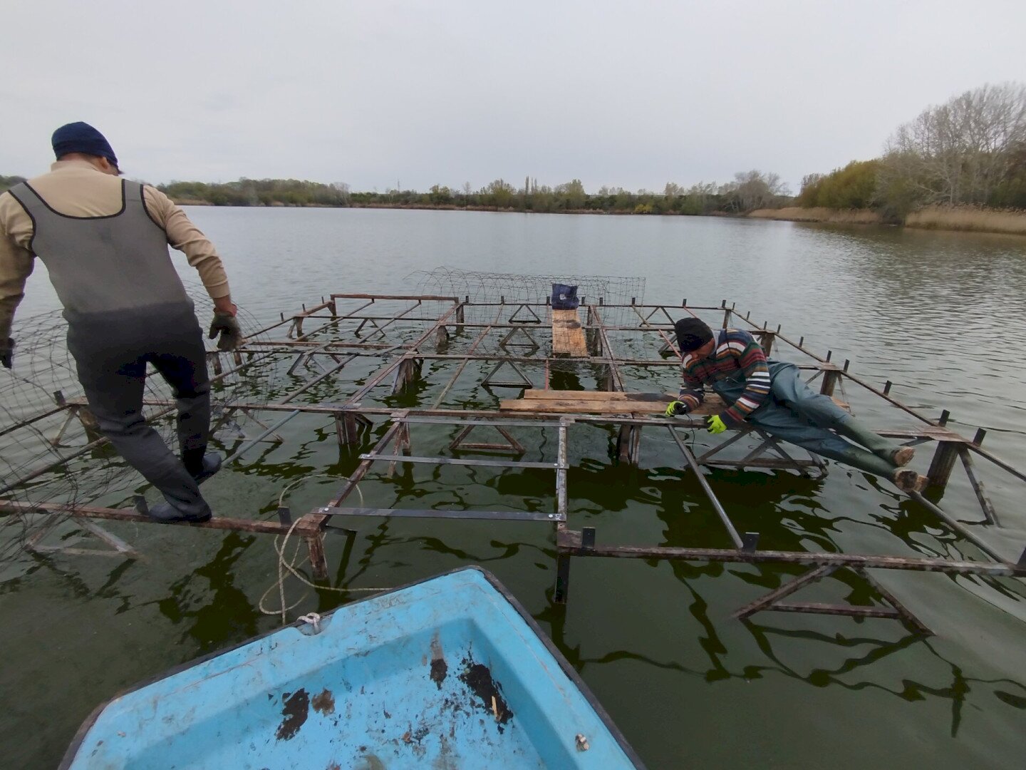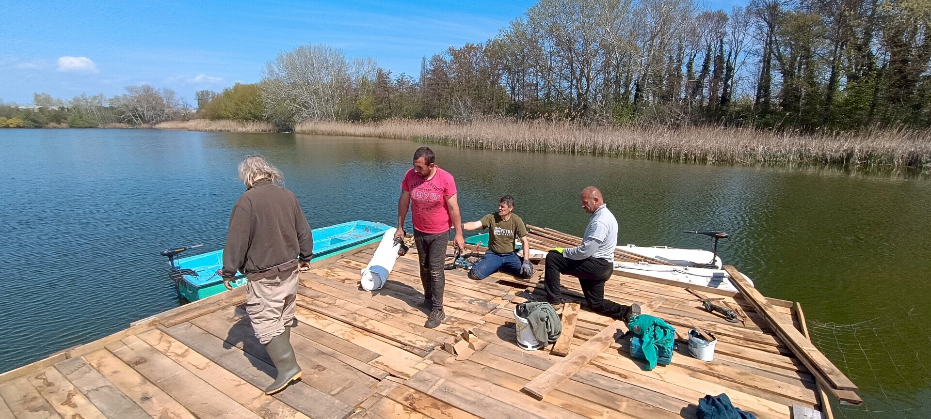 Az egykor horgásztóként funkcionáló 10-es tavon ott maradt, mára már funkciójukat vesztett, olykor illegálisan használatba vett horgászstégeket munkatársaink tavaly októberben civil segítséggel a tóból eltávolították. A 10 különböző méretű stég remek lehetőséget kínált arra, hogy azokat megmunkálva, átalakítva egy közel 33 négyzetméteres szigetként kerüljenek vissza tavasszal a vízbe. Az újrahasznosítás révén minimális költségből megvalósítható volt a költősziget.