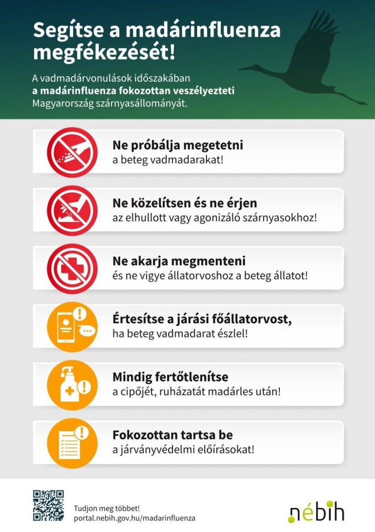A vadmadárvonulások időszakában a madárinfluenza fokozattan veszélyezteti Magyarország szárnyasállományát.
