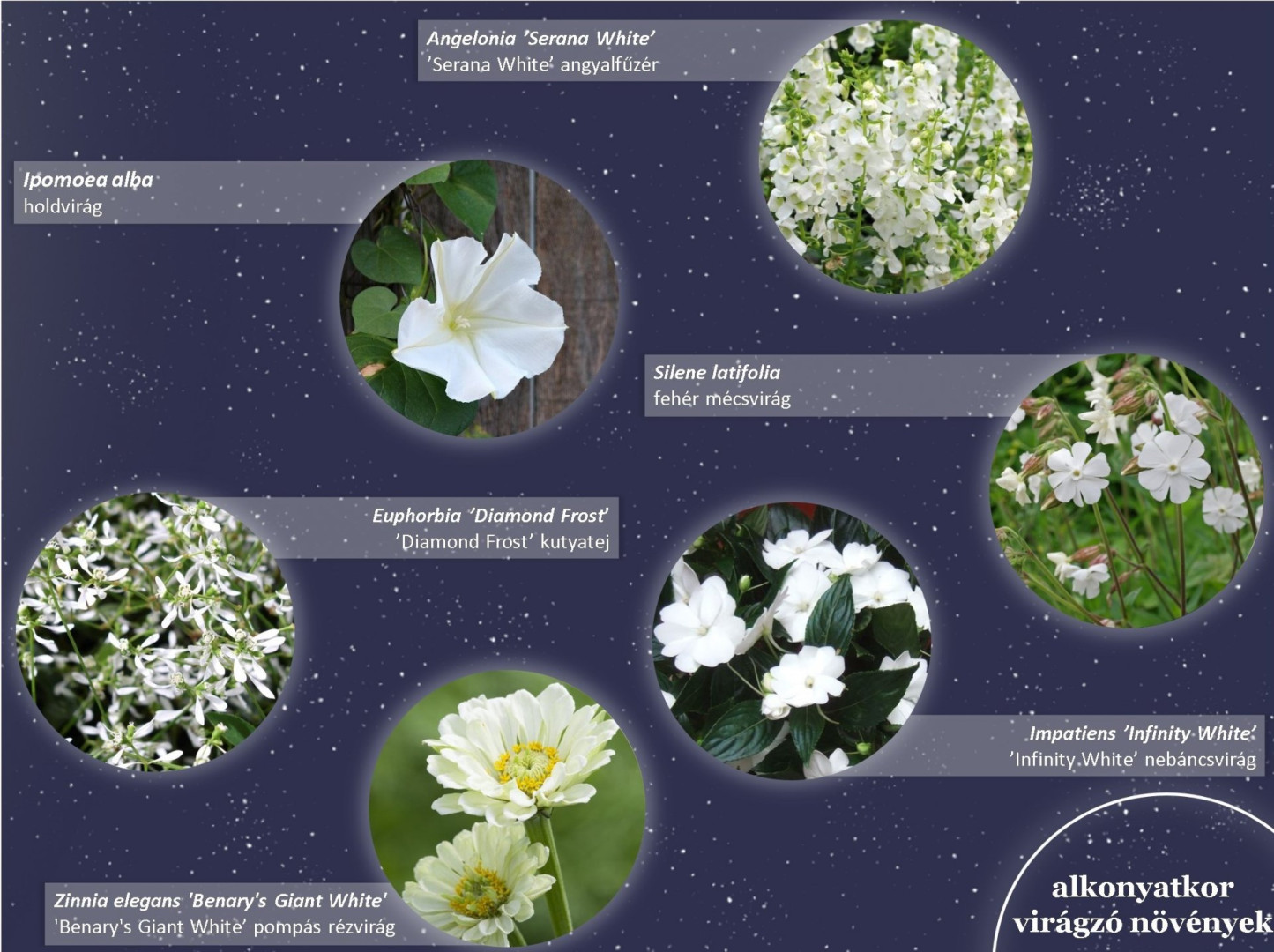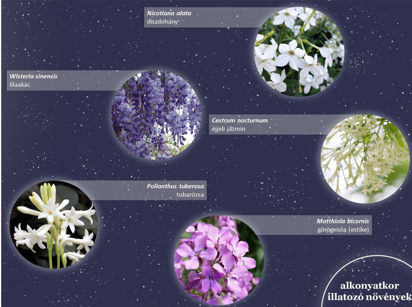 A virágok beporzása a rovarok által nyújtott kulcsfontosságú ökoszisztéma szolgáltatás, ugyanis ez a mozzanat a legtöbb virágos növény esetében a gyümölcs- és termésérlelés alapfeltétele, melynek legfőbb haszonélvezői mi magunk vagyunk. A télkerti növényalkalmazásról szóló ismertetőnkben (ld. Kapcsolódó) már beszámoltunk arról, hogy a hideg időszakban kertünk virágzó vagy éppen termést hozó növényei miként szolgálnak táplálékforrásul és búvóhelyül az állatvilág számára, elősegítve ezzel is a biodiverzitás megőrzését. Mostani írásunkban az éjszaka során aktív pollinátorokat helyezve előtérbe, a kifejezetten esti órákban látványosságot nyújtó holdfénykerti növényalkalmazást szeretnénk bemutatni.