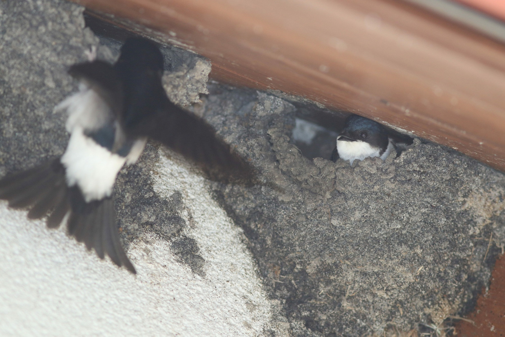 Az elmúlt hetek szárazsága miatt a molnárfecskéink nem találtak megfelelő mennyiségű és minőségű sarat, csak nagyon-nagyon lassan haladtak a fészkek felújításával.