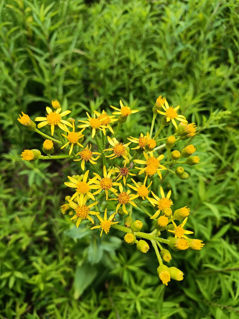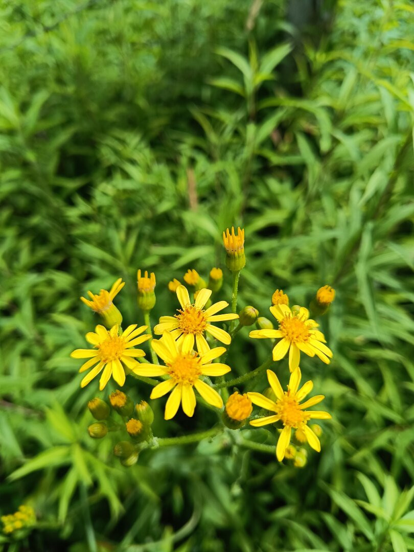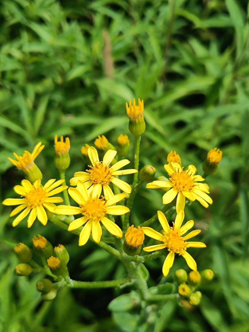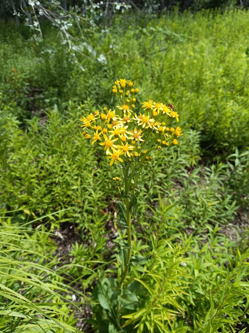 Nevéhez méltóan nagy termetű növény, akár a másfél méteres magasságot is elérheti. Levelei széles lándzsásak vagy elliptikusak, csipkés-fogas szélűek, a szár és a levelek molyhosak, sárga fészekvirágzataiban 8 sugárvirág található. Júniustól szeptemberig virágzik.