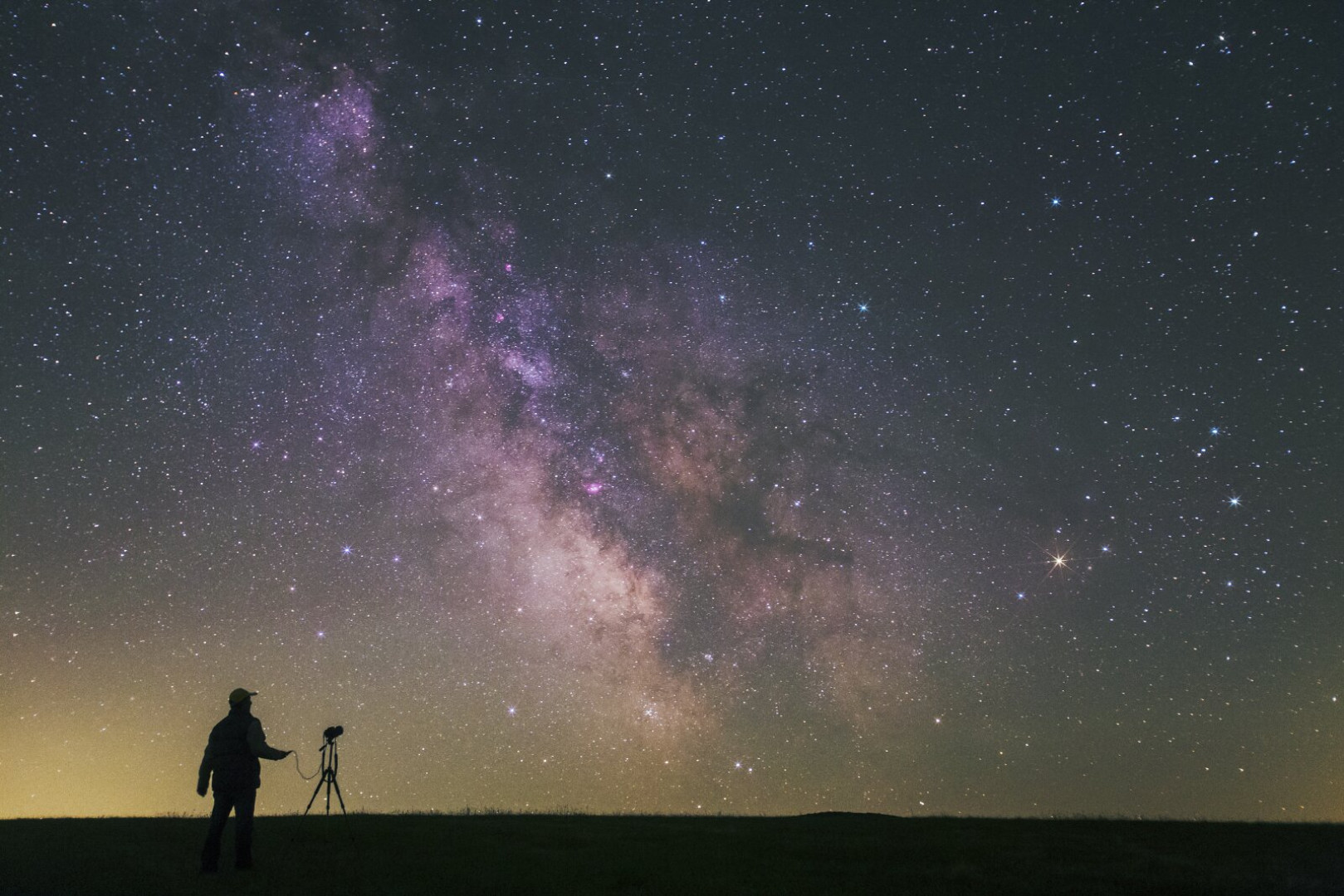 • Galaxisunk központi régióját éppen egy asztrofotográfus kívánja megörökíteni, miközben a Tejút valóban a földig ér a Bakony sötétjében.